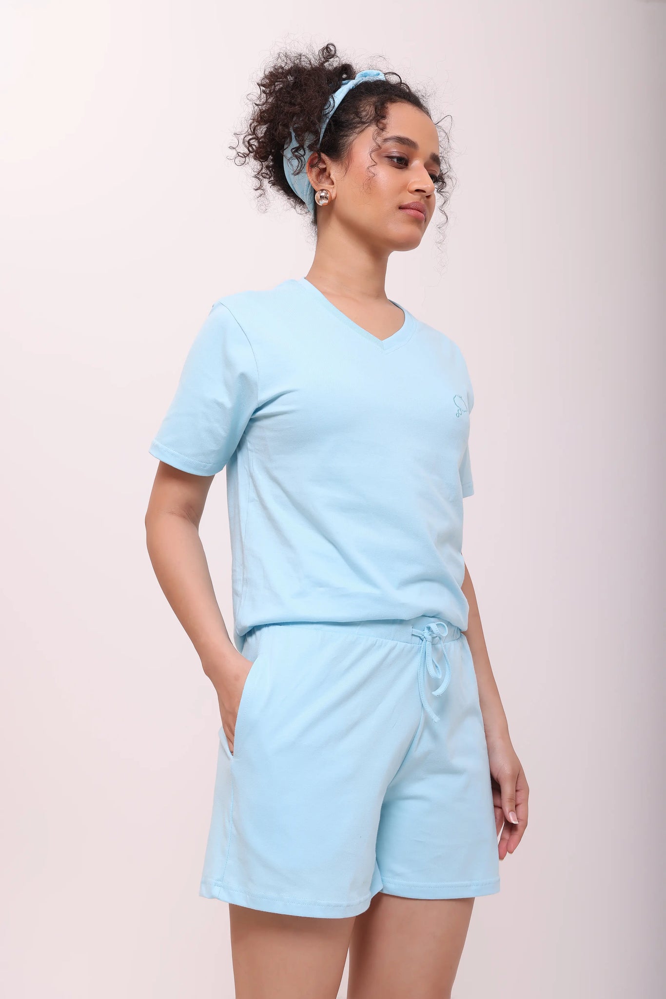 Basic Sky Blue Cotton Shorts