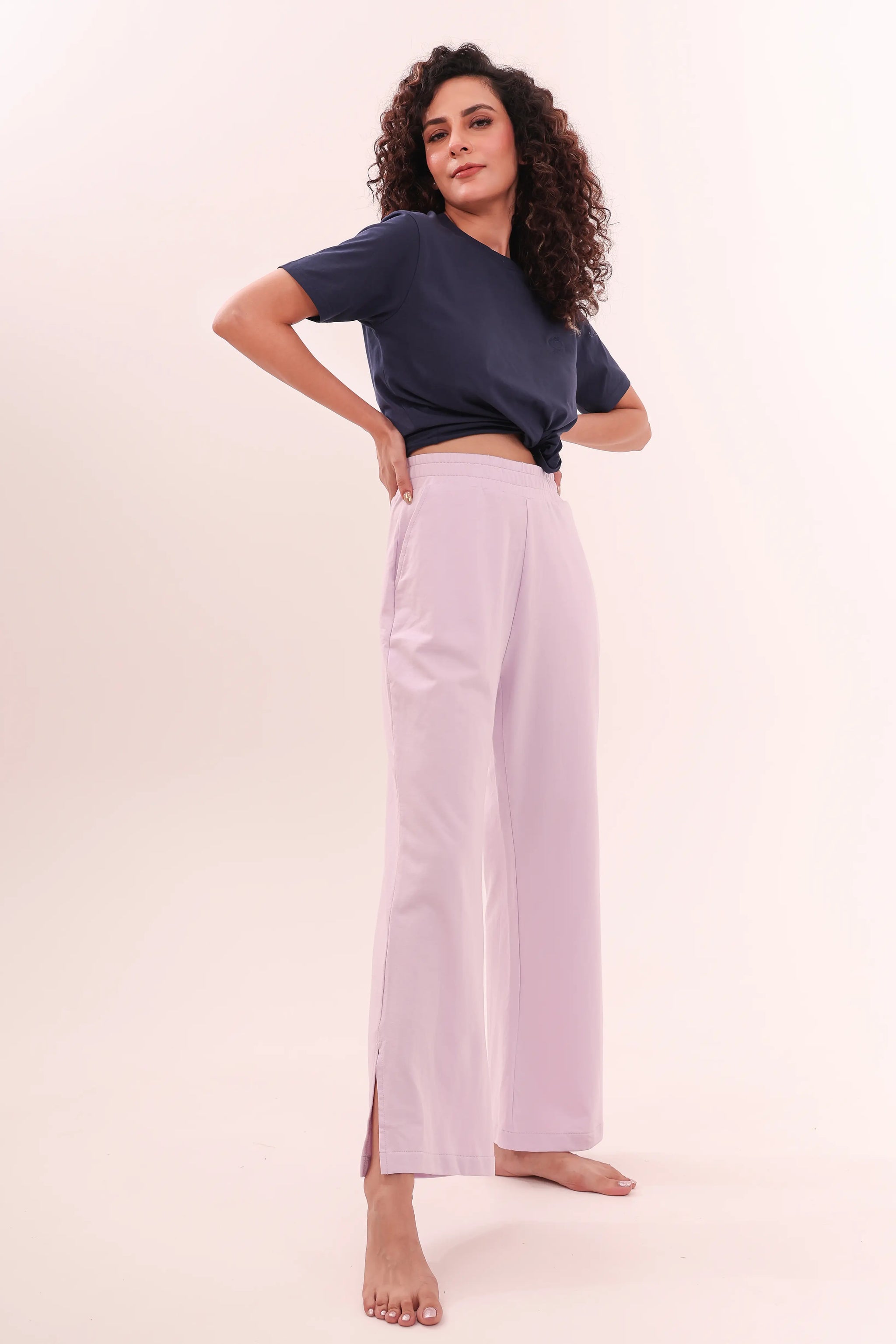 Lavender Flared Side Slit Pants