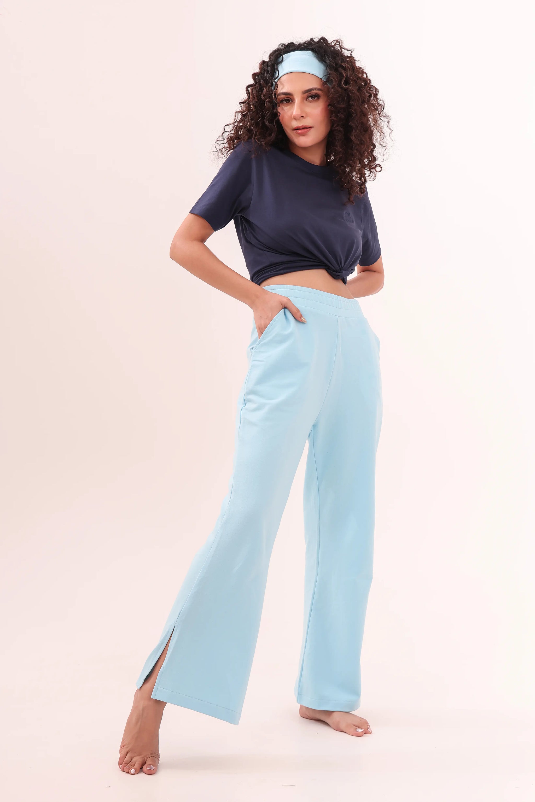 Sky Blue Flared Side Slit Pant